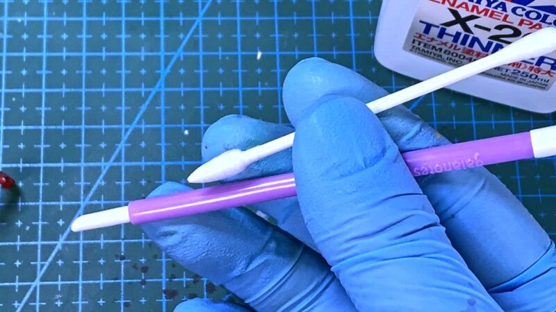 乾燥後は、エナメル溶剤を綿棒やフィニッシュマスターに含ませて、はみ出しを軽く拭き取り。